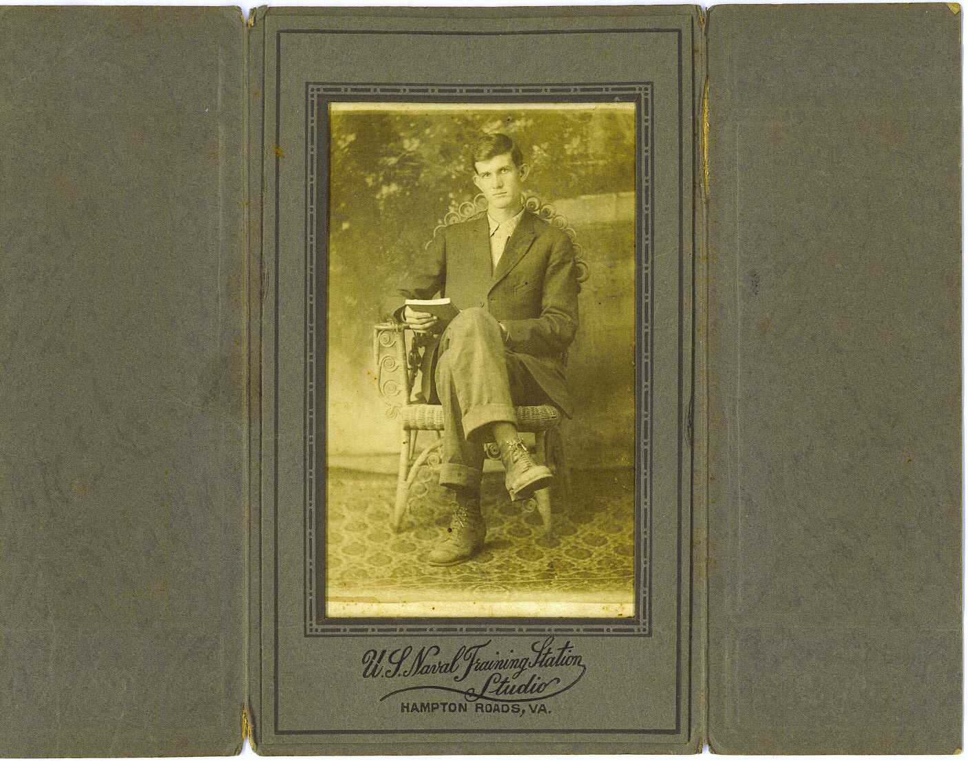 PREVIOUSLY AN UNKNOWN: "The only clues are his physical features and the cover the photo is in - it says "U.S. Naval Training Station Studio, Hampton Roads, VA. This picture was sent to me by my Aunt Peggy Wear. 'Cindy, this man looks like a Wear to me, with the size and huge ears. He is good looking like so many of the Wear men's young pictures. See if you can find out who he is.' ~~Peggy Jayne Wear. Hope some one might know who this is." ~~Cindy