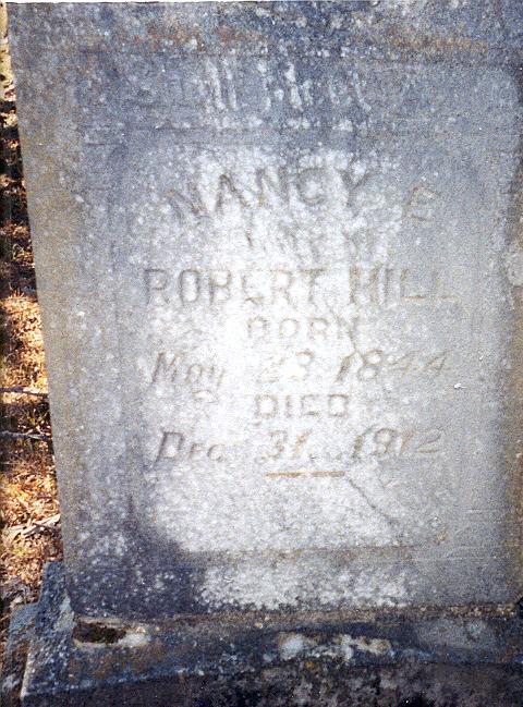 | Hill, Nancy E. | May 13 1844 | Dec 31, 1912 | "wife of Robert Hill" | CS |