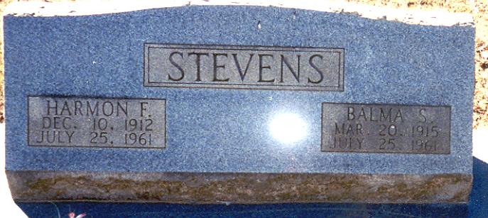 | Stevens, Harmon F. | Dec 10, 1912 | Jul 25 1961 | Double Stone with Balma S. Stevens | CS |