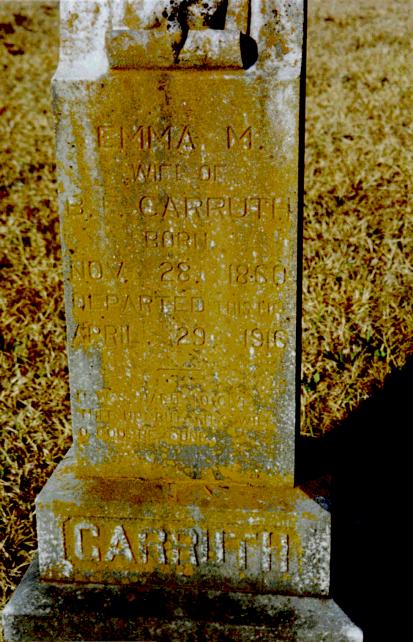 | Carruth, Emma M. | Nov 28, 1860 | Apr. 29, 1916 | "WIFE OF B. F. CARRUTH" | CS & PC |