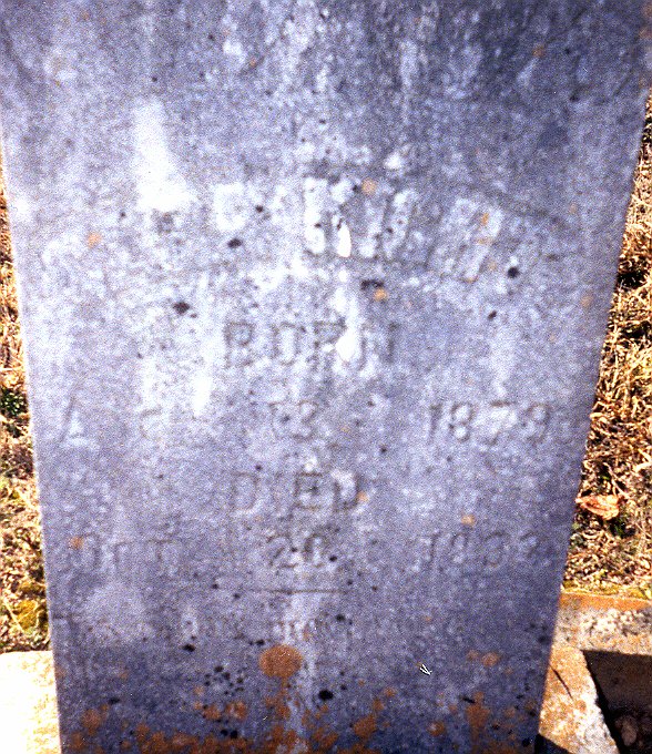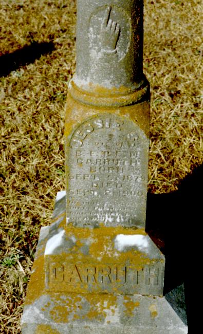 | Carruth, Jessie S. | Sep 5, 1879 | Sep 2, 1900 | "Son of B. F. & E. M. CARRUTH" | CS & PC |