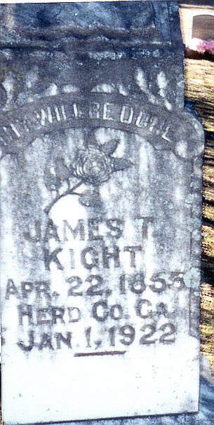 | Kight, James T. | Apr 22 1855 | Jan 1 1922 | [Born] Herd Co. GA.; "THY WILL BE DONE" | CS |