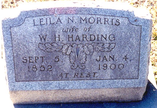 | Harding, Leila N. Morris | Sep 5, 1852 | Jan 4, 1900 | "wife of W. H. HARDING; AT REST" | CS |