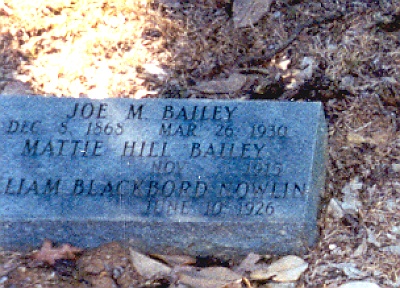 | Bailey, Mattie Hill | Nov 1915 | Doublestone in two seperate pieces with many names; 1st Stone | CS | |