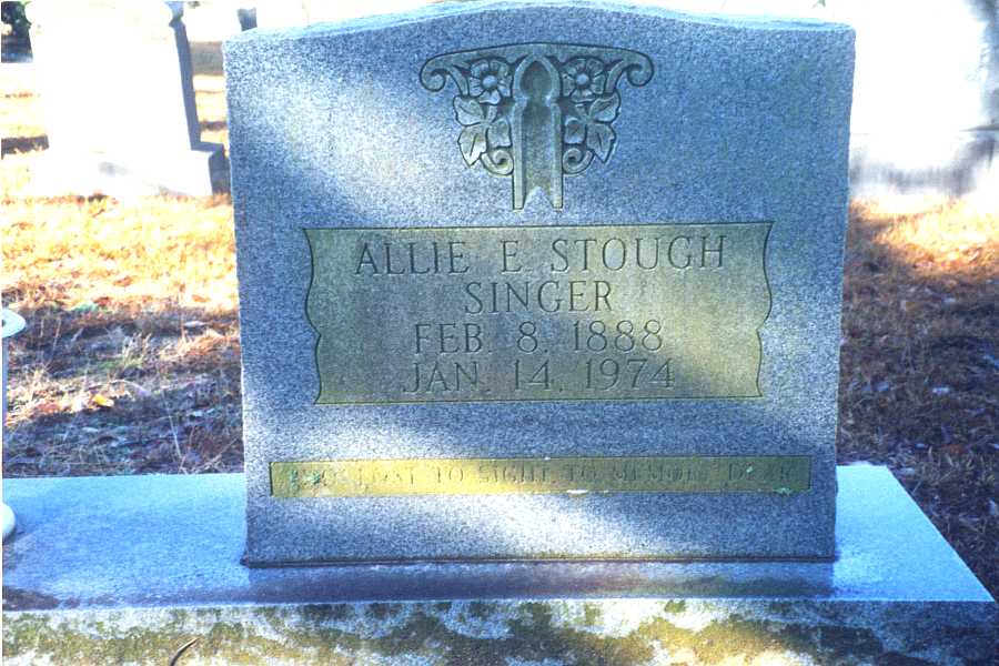 | Singer, Allie E. Stough | 8 Feb 1888 | 14 Jan 1974 | "THO LOST TO SIGHT, TO MEMORY DEAR" [w/o William Thomas Singer; Children: Ester & Willie Mae Singer] | CM |