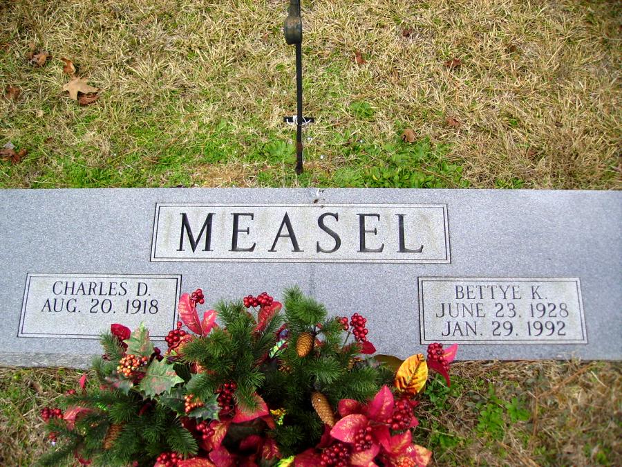 | Measel, Bettye K. | June 23, 1928 | Jan. 29, 1992 | Double Stone with Charles D. Measel | JW & LH |