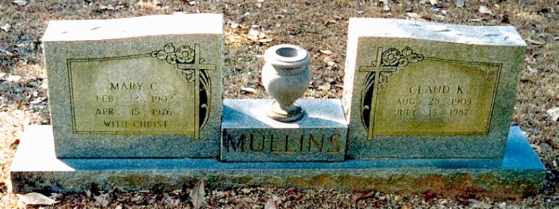 | Mullins, Mary C. | Feb 12,1902 | Apr 15, 1976 | Double Stone with Claud K. Mullins "WITH CHRIST" [maiden name Caple; w/o Claud Kenepi Mullins | BM |