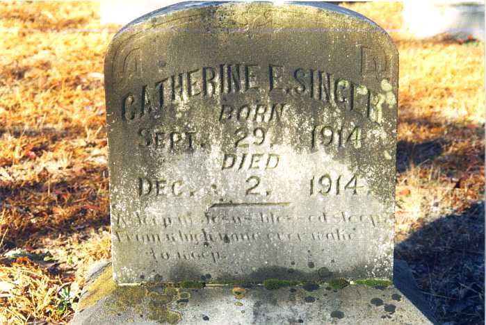 | Singer, Catherine F. | 29 Sept. 1914 | 2 Dec 1914 | "Asleep in Jesus blessed sleep, From which none ever wake to weep."/td> | CM |