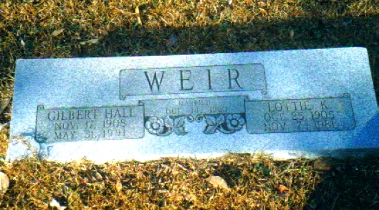 | Weir, Gilbert Hall | Nov. 17, 1908 | May 31, 1991 | "MARRIED OCT. 14, 1950" Double Stone with Lottie K. Weir [s/o James S. Weir & Allie Hall] | CM |