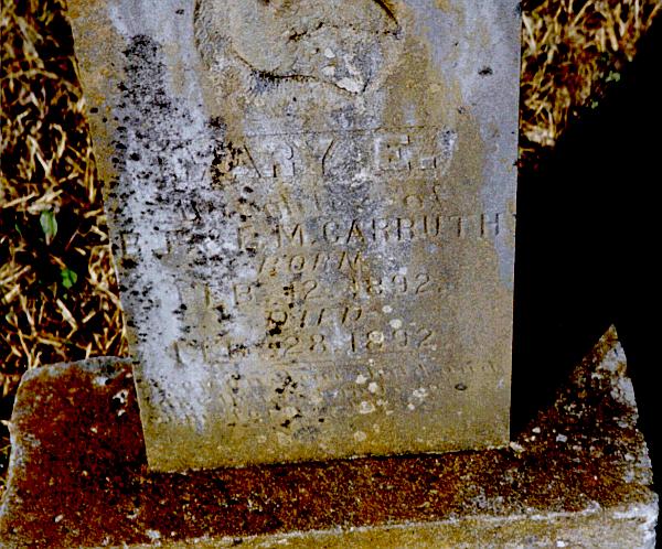 | Carruth, Mary E. | Feb 12, 1892 | Feb 28, 1892 | "Daughter of B. F. & E. M. CARRUTH" | PC |
