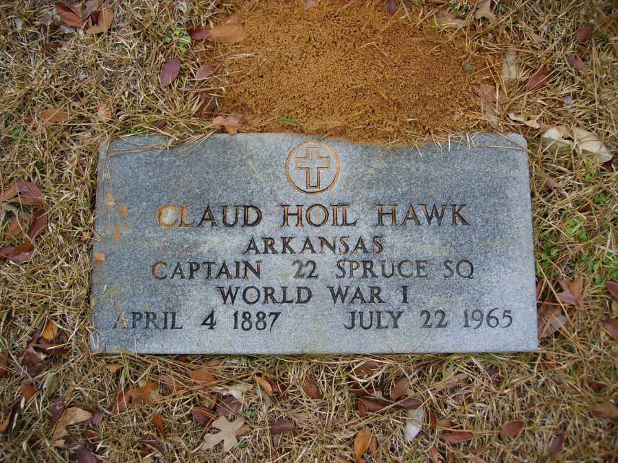 | Hawk, Claud Hoil | 4 Apr 1887 | 22 Jul 1965 | "ARKANSAS" "CAPTAIN 22 SPRUCE SQ" "WORLD WAR I" Military Stone with Cross Symbol | LH |