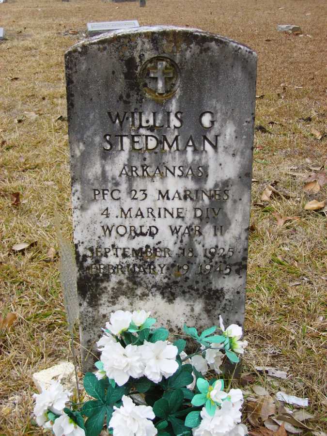 | Stedman, Willis G. | 18 Sep 1925 | 19 Feb 1945 | "ARKANSAS" "PFC 23 MARINES" "4 MARINE DIV" "WORLD WAR II" Military Stone with Cross Symbol | LH |