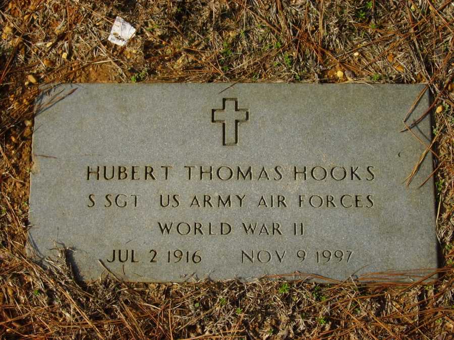 | Hooks, Hubert Thomas | 2 Jul 1916 | 9 Nov 1997 | "S SGT US ARMY AIR FORCES" "WORLD WAR II" Military Stone with Cross Symbol | LH |