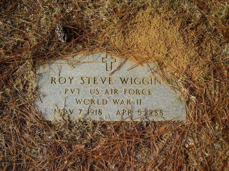 | Wiggins, Roy Steve | 7 Nov 1918 | 5 Apr 1988 | "PVT US AIR FORCE" "WORLD WAR II" Military Stone with Cross Symbol | LH |