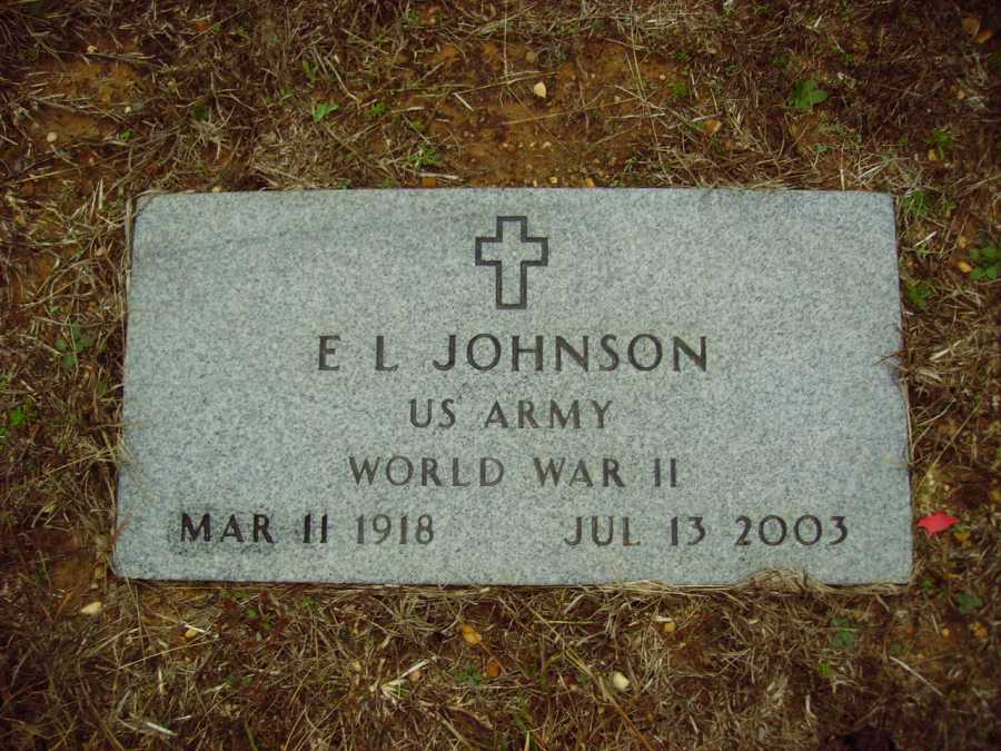 | Johnson, E. L. | 11 Mar 1918 | 13 Jul 2003 | "US ARMY" "WORLD WAR II" Military Stone with Cross Symbol | LH |