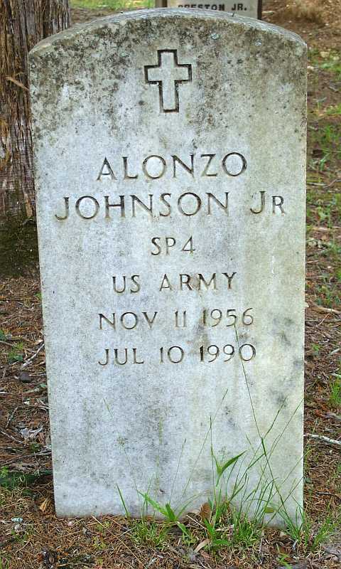 PHOTO JOHNSON, ALONZO JR. 11-11-1956 7-10-1990 MILITARY STONE "SP4" "US ARMY" CROSS EMBLEM