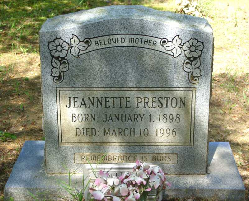 PHOTO PRESTON, JEANNETTE 1-1-1898 3-10-1996 "BELOVED MOTHER" "REMEMBRANCE IS OURS"