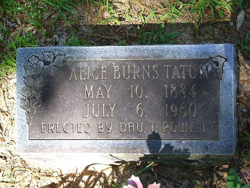 PHOTO TATUM, ALICE BURNS 5-10-1884 7-6-1960 "ERECTED BY DAU. T. POWELL"