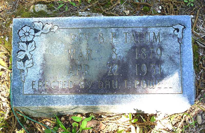 PHOTO TATUM, B. F. REV. 3-8-1879 4-22-1951 "ERECTED BY DAU. T. POWELL"