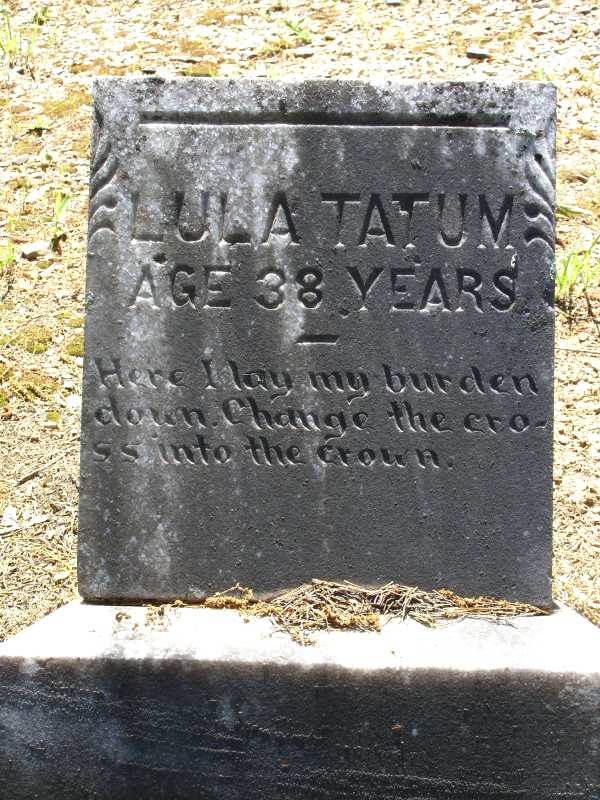 PHOTO TATUM, LULA "AGE 38 YEARS" "HERE I LAY MY BURDEN DOWN.