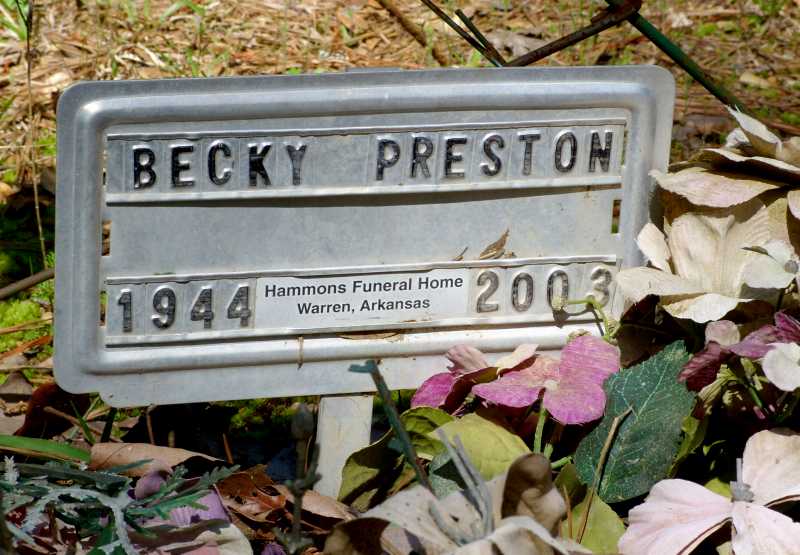 PHOTO PRESTON, BECKY 1944 2003 HAMMONS FUNERAL HOME, WARREN, ARKANSAS METAL FUNERAL HOME MARKER