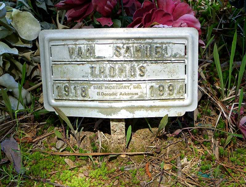 PHOTO THOMAS, VAN SAMUEL 1918 1994 SIMS MORTUARY, INC. EL DORADO, ARKANSAS METAL FUNERAL HOME MARKER
