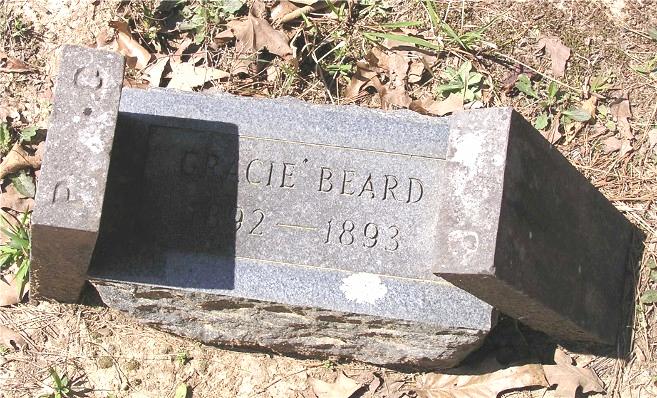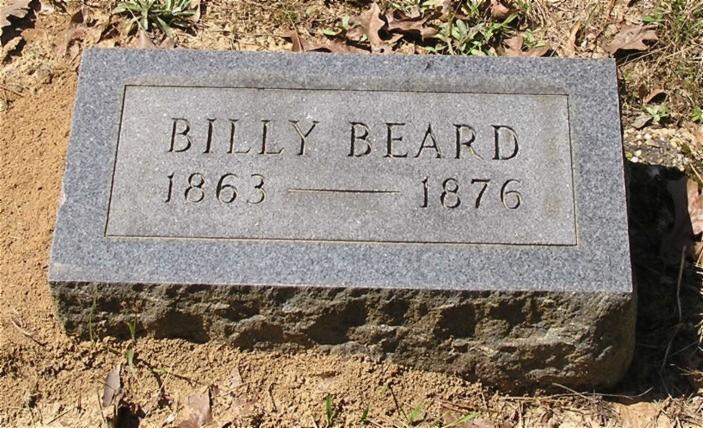 "According to my grandmother (herself a Beard), the site for the cemetery was determined when a young boy named Billy Beard while playing, mentioned how pretty this area was, and that he would like to be buried here. Shortly thereafter, he died and his wish was granted (Row 3)