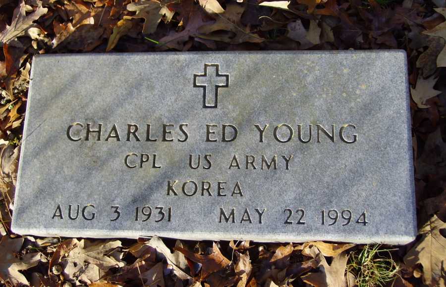 | "Buddy" Charles Ed Young | Aug 3, 1931 | May 22, 1994 | "HEAVEN MADE" *PC Military Headstone "CPL US ARMY" "KOREA" Cross emblem *LH |