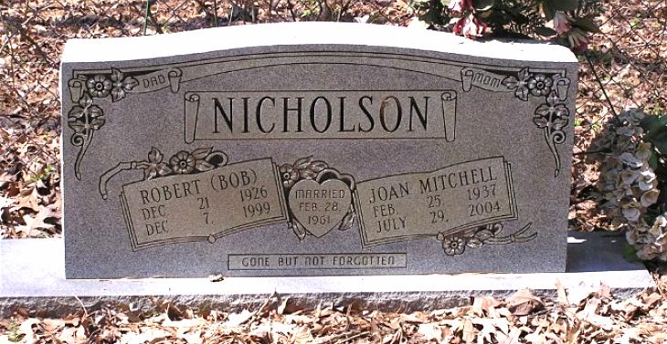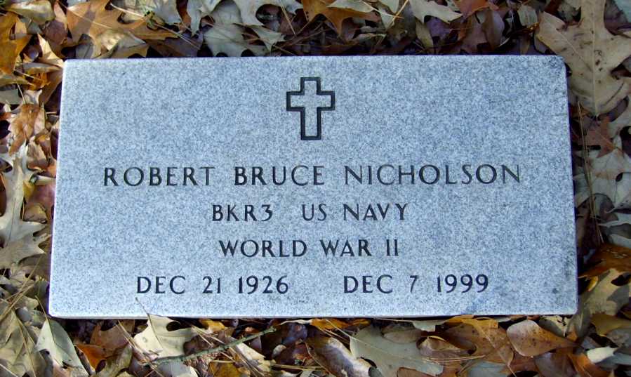 | Robert [Bruce] (Bob) Nicholson - NEW PHOTO! 3-17-2009 | Dec 21, 1926 | Dec 7, 1999 | Double Stone with Joan Mitchell Nicholson "MARRIED FEB. 28, 1961" "GONE BUT NOT FORGOTTEN" "DAD" Military Headstone "BKR3 US NAVY" "WORLD WAR II" *BB & *LH |