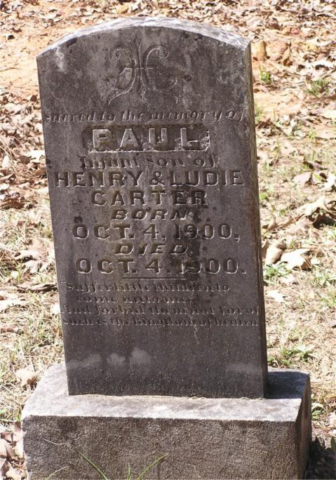 | Paul Carter - NEW PHOTO! 3-17-2009 | Oct 4, 1900 | Oct 4, 1900 | "Sacred to the memory of PAUL Infant Son of HENRY & LUDIE CARTER" "Suffer little children to come unto me, And forbid them not for such is the kingdom of heaven" *BB |