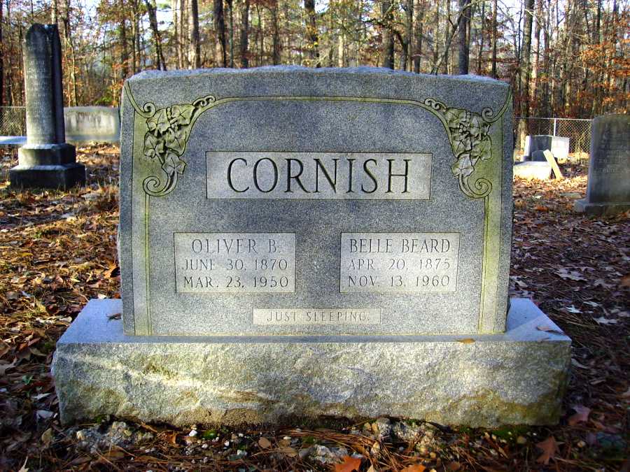 | Belle Beard Cornish | Apr 20, 1875 | Nov 13, 1960 | "JUST SLEEPING" Double Stone with Oliver B. Cornish *LH |