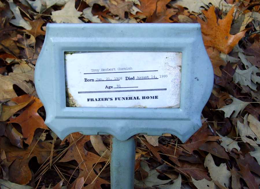 | Troy Herbert Cornish | Jan 21, 1908 | Aug 14, 1999 | "Age 91" no headstone, only a Frazer's Funeral Home marker *LH |