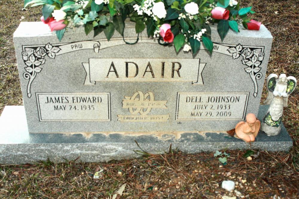 | Adair, Dell Johnson | July 2, 1933 | May 29, 2009 | Double Stone with James Edward Adair; [Married] "AUGUST 31, 1968" "MIMI" "PAW" "DAUGHTER RENEE" | SD | 84376213 |