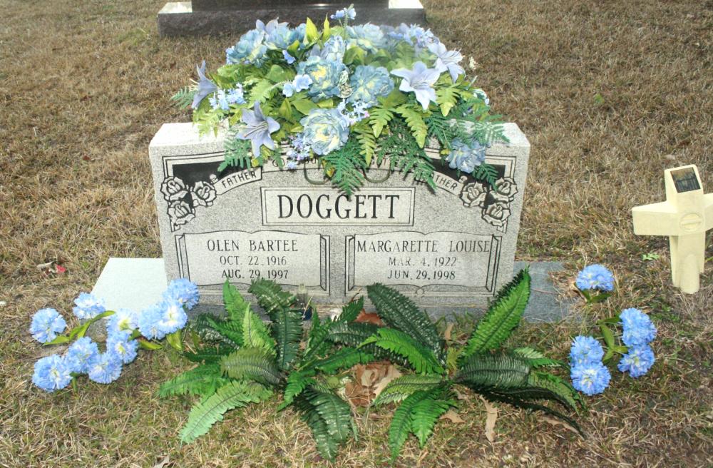 | Doggett, Olen Bartee | October 22, 1916 | August 29, 1997 | Double Stone with Margarette Louise Doggett; "FATHER" "MOTHER" | SD | 84375883 |