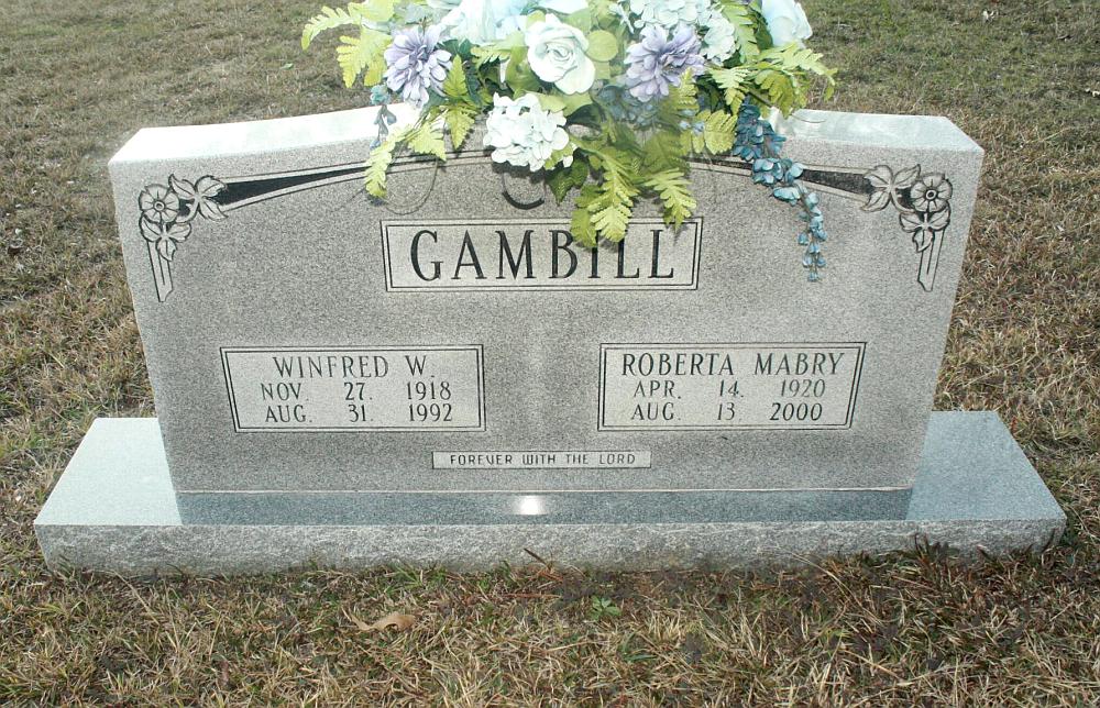 | Gambill, Winfred W. [Wesley] | November 27, 1918 | August 31, 1992 | Double Stone with Roberta Mabry Gambill "FOREVER WITH THE LORD" | JW & SD | 84325186 |