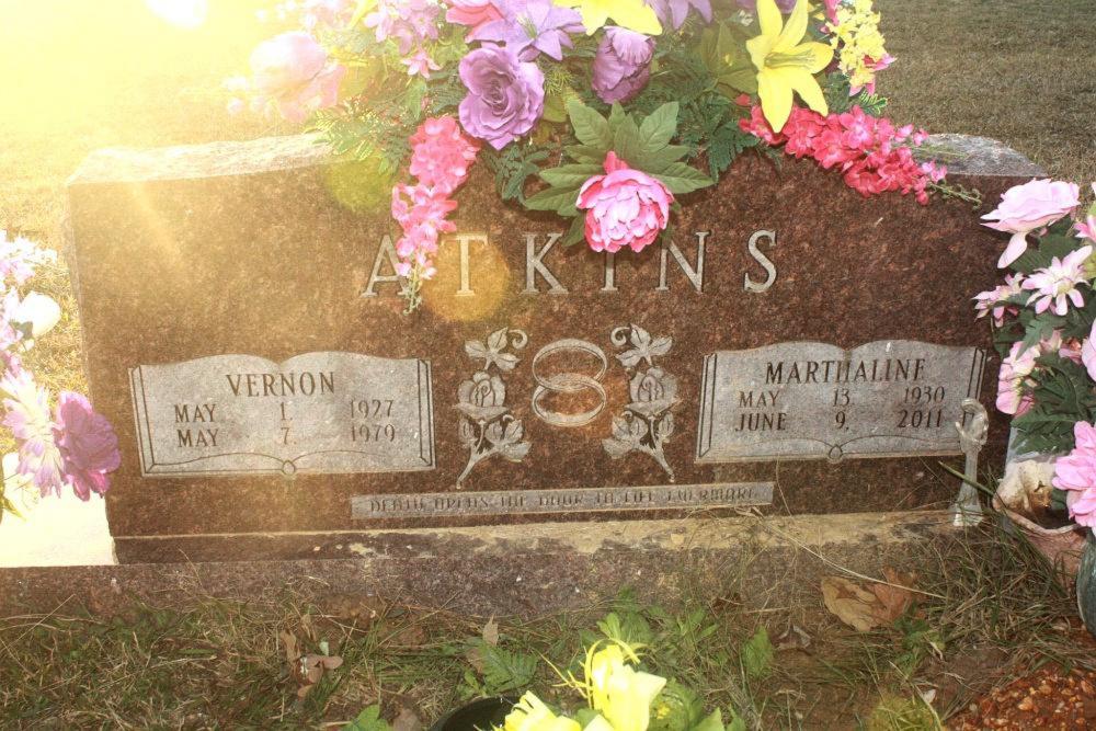 | Atkins, Vernon [Lee] | May 1, 1927 | May 7, 1979 | Double Stone with Marthaline Atkins "DEATH OPENS THE DOOR TO LIFE EVERMORE" | JW & SD | 84325114 |