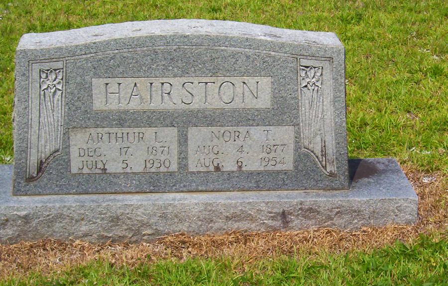 | Hairston, Nora T. | Aug 4, 1877 | Aug 6, 1954 | Double tombstone with Arthur L. Hairston: "T" for Temple | PC |