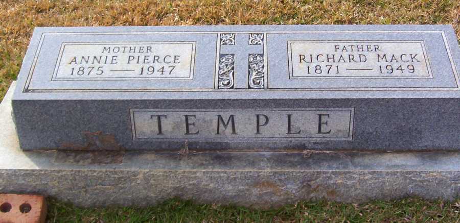 | Temple, Annie Pierce | 1875 | 1947 | Double Stone with Richard Mack Temple; “MOTHER” | PC |