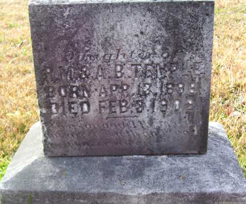 | Temple, Alleen | Apr 13, 1898 | 3-Feb-1902 | "Daughter of R. M. & A. B. Temple | PC |