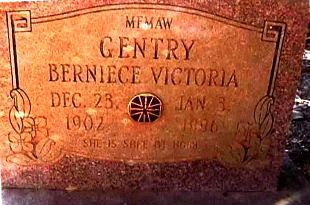 | Gentry, Berniece Victoria | Dec 23, 1902 | Jan 3, 1996 | "MEMAW" "SHE IS SAFE AT HOME" | NJ |