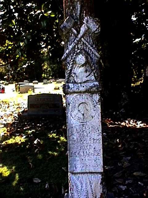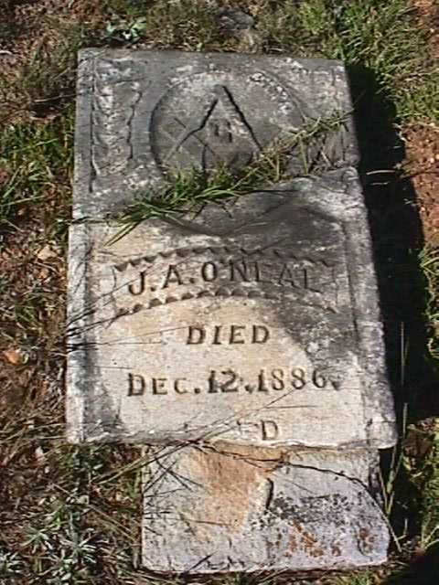 | O'Neal, J. A. | Dec. 12, 1886 | Broken Stone; Masonic Symbol [Full name James Atlas O'Neal; born in 1834; h/o Mary Jane Temple O'Neal] | NJ | |