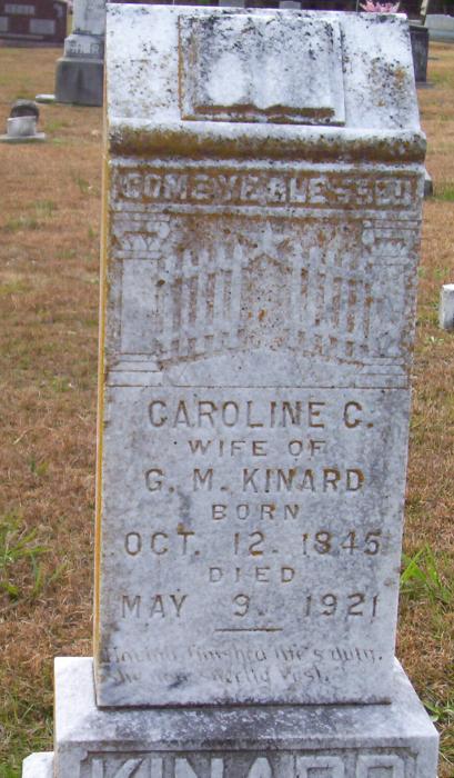 | Kinard, Caroline C. | Oct 12, 1845 | May 1921 | Wife of G. M. Kinard | PC |