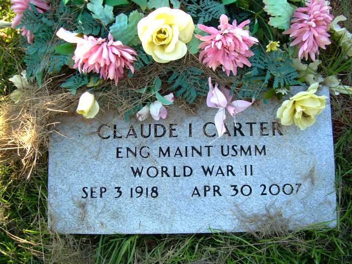 | Carter, Claude Izack | Sept. 3, 1918 | Apr. 30, 2007 | Double Stone with Sylvia Diana Carter Military Footstone Photo "ENG MAINT USMM" "WORLD WAR II" [s/o George Izack Carter & Nannie Walker; Second h/o Sylvia Diana Saks] | SW |
