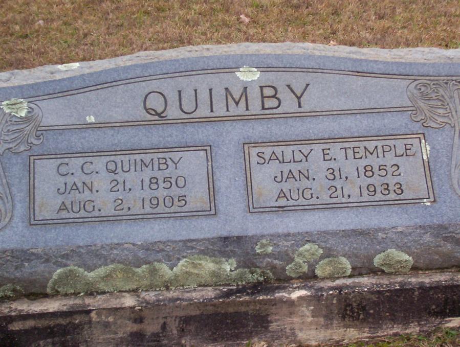 | Quimby, C. C. | Jan 21, 1850 | Aug 2, 1905 | Double tombstone with Salley E. Temple Quimby | PC |