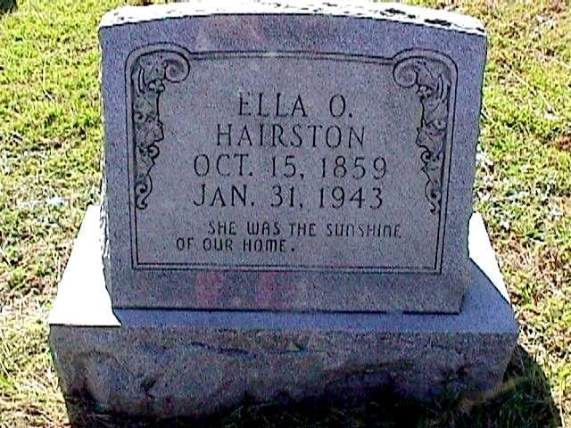 | Hairston, Ella O. | Oct 15, 1859 | Jan 31, 1943 | "SHE WAS THE SUNSHINE OF OUR HOME" [Maiden Name Morris; Married 1-21-1879; w/o J. B. Hairston] | NJ |