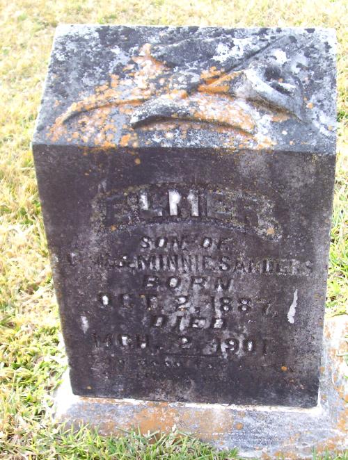 | Sanders, Elmer | Oct 2, 1887 | Mar 2, 1901 | SON OF G. W. & MINNIE TEMPLE SANDERS | PC |