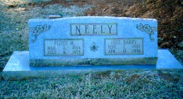 | Neely, Floyd M. | Mar 2, 1894 | July 4, 1978 | Double Stone with Inez Barry Neely [s/o Marshall Hamilton Neely & Ida Ann Kinard; h/o Inez Barry Neely; children: Marshall Brown, Noah, Martha Jean & Ellen Neely] | CM |