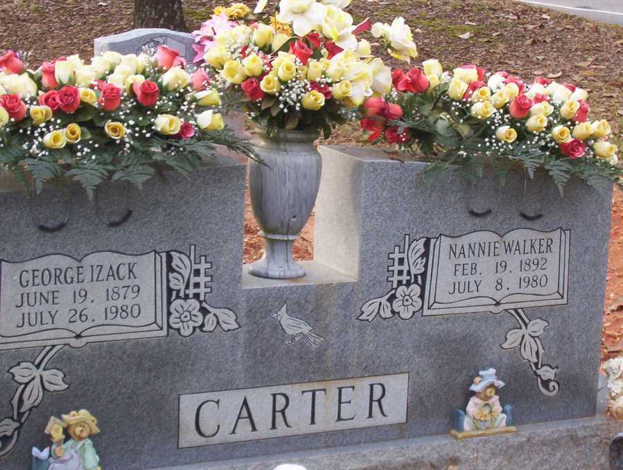 | Carter, George Izack | June 19, 1879 | July 26, 1980 | Double Stone with Nannie Walker Carter [George & Nannie had 9 children] | PC & SW |