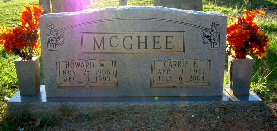 | McGhee, Howard W. [William] | 25 Nov 1908 | 15 Dec 1993 | Double Stone with Carrie E. McGhee [h/o Carrie Elizabeth Carter McGhee; s/o Ben & Edna Haygood McGhee] | DP & SW |