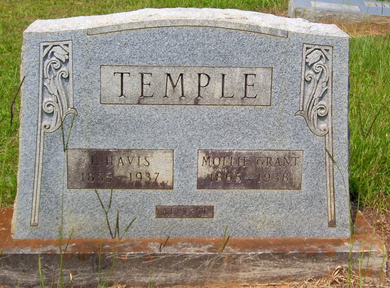 | Temple, J. Havis | 1855 | 1937 | "AT REST" Double Stone with Mollie Grant Temple [First name John; Birth 29 Jul 1855; Death 11 Jun 1937; s/o Altoman L. & Sarah Elizabeth Whiteside Temple; h/o (1)Anne Claret Temple; h/o (2)Mary "Mollie" Elizabeth Grant Ferguson Temple] | RC & PC |